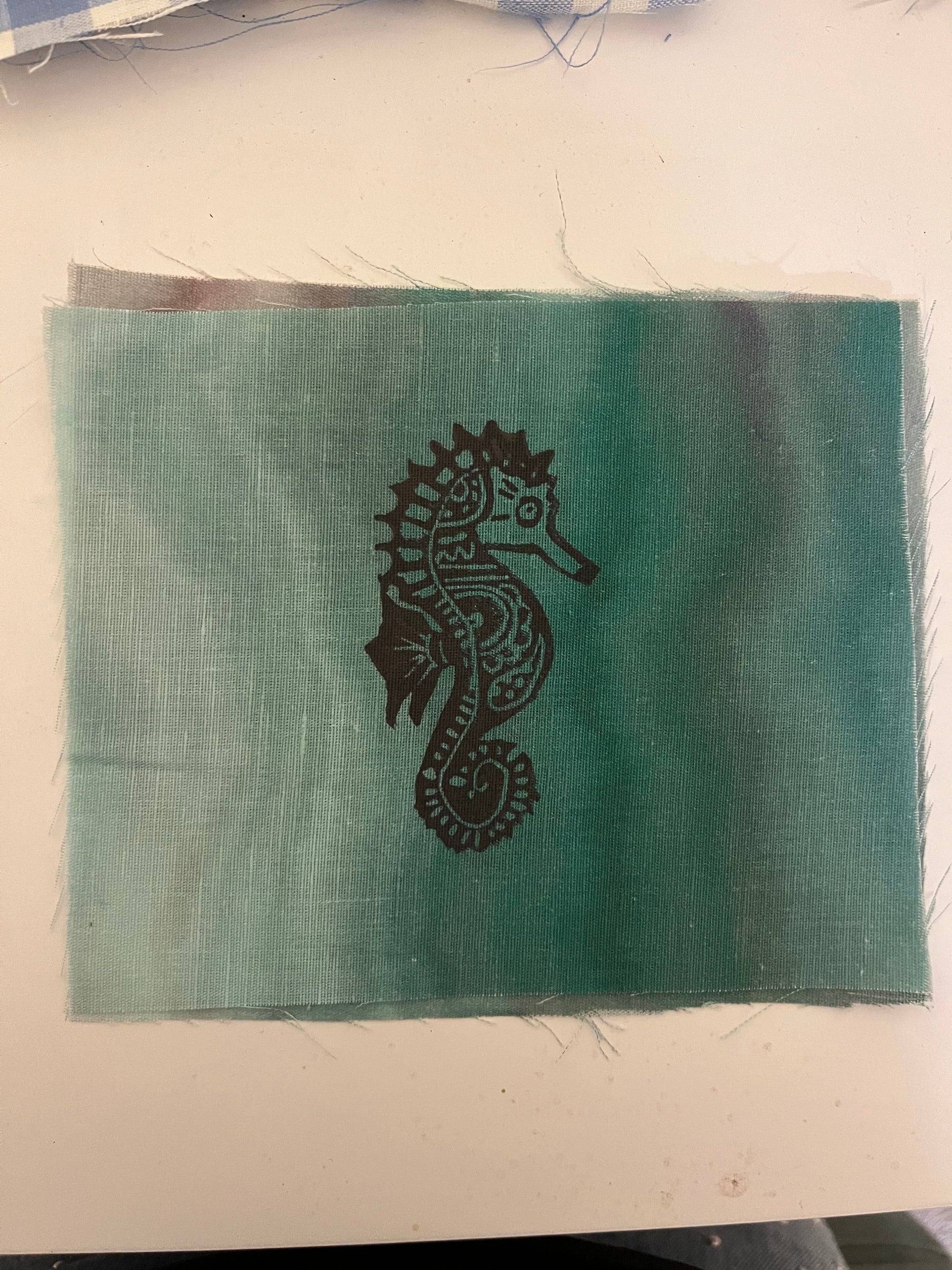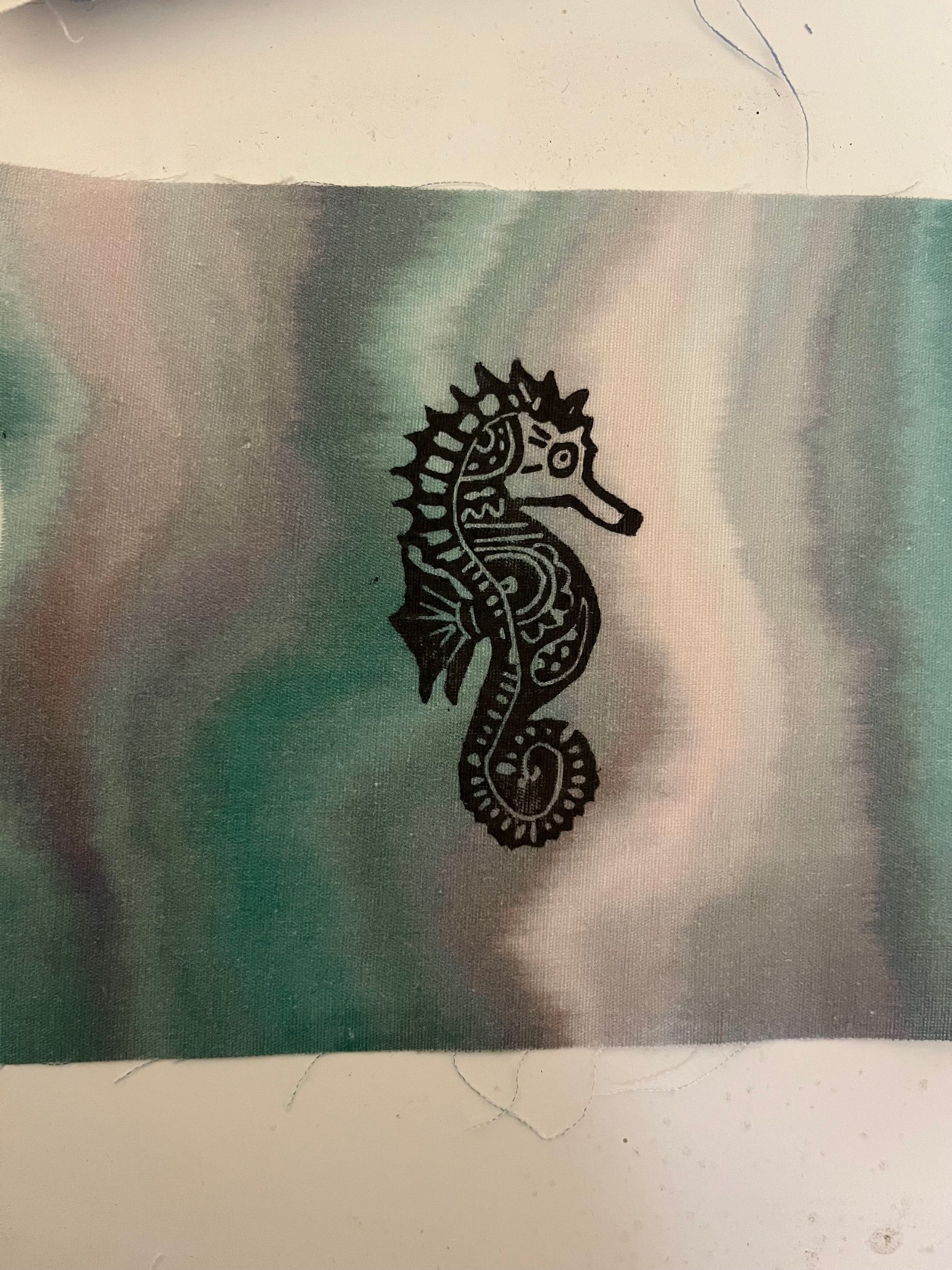 Linocut hand printed fabric patch with starfish motif. Size is approx. 16cm x 13cm.